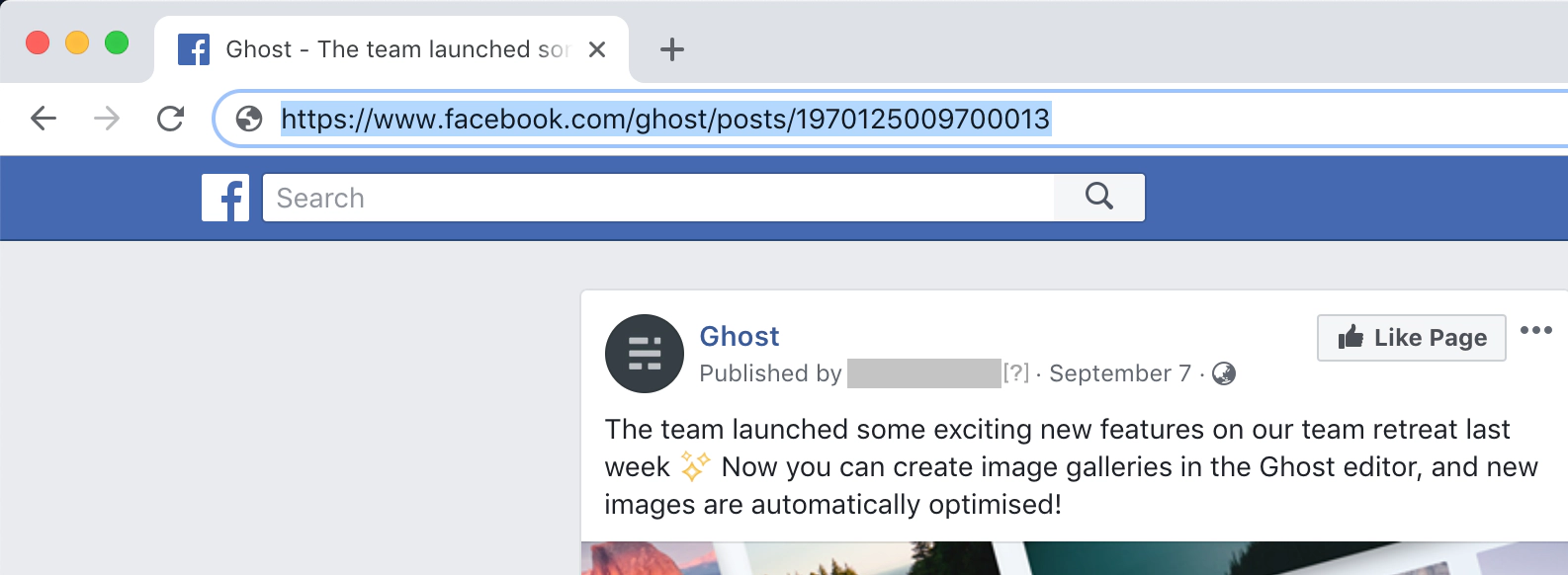 That’s all there is to it! Ghost interacts with Facebook via their OEmbed API in order to retrieve all the correct settings automatically and serve your status in the best way possible.